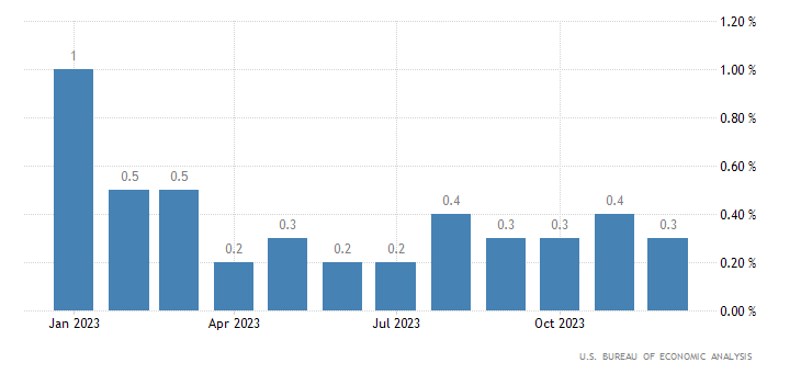 I dati sui redditi di dicembre sono usciti in linea con le attese mentre la spesa personale è salita di più. Ciò rappresenta un fatto che gli americani continuano a consumare risparmi, certi del lavoro sicuro a causa della resilienza del mercato del lavoro.