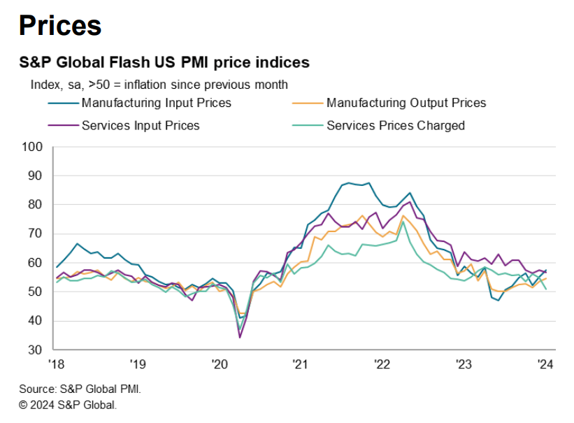 A livello macro economico i PMI USA preliminari di gennaio hanno sorpreso in positivo, con il manifatturiero che è tornato in espansione sia pure marginale per la prima volta da 9 mesi e i servizi che hanno ulteriormente accelerato al massimo da 7 mesi. Sul fronte prezzi si segnala moderazione con in generale accelerazione per il manifatturiero e calo per i servizi. E' da notare che i prezzi in output sono in entrambi i casi più bassi di quelli in input, il che è un altro segnale di margini in compressione (v.grafico):