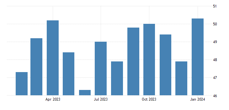 Il dato preliminare mensile di gennaio del PMI manifatturiero S&P Global è pari a 50,3 punti, oltre il consensus di 47,9 punti ed in crescita rispetto alla rilevazione di dicembre, anch’essa di 47,9 punti.