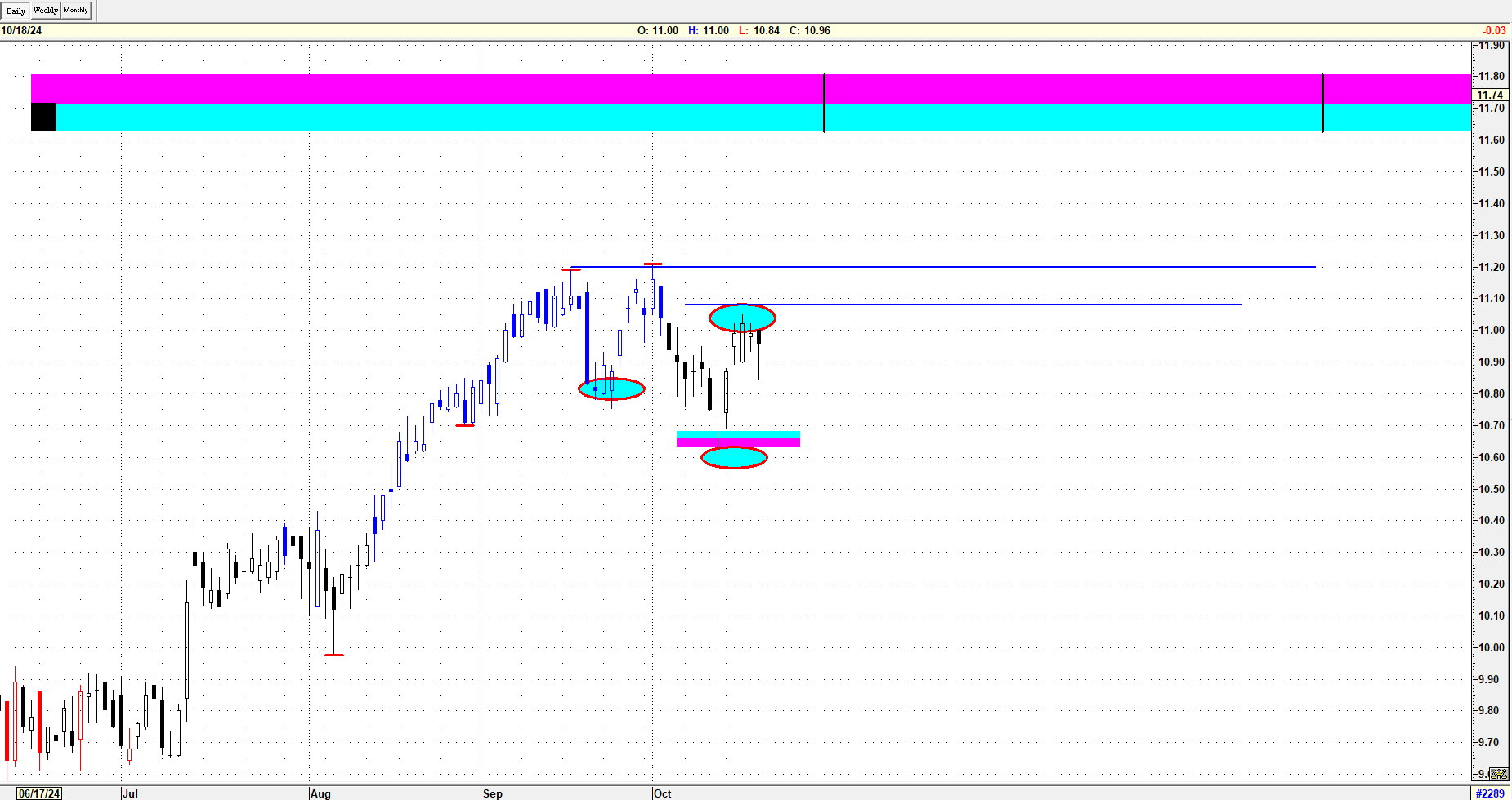 le barre blu sono rialziste e indicano un potenziale impulso verso l'alto.
