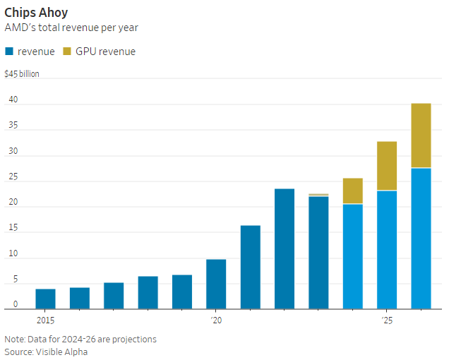 Le ultime offerte di AMD non costeranno di certo a NVIDIA il suo enorme vantaggio. Ma con una domanda ancora in forte espansione per l'infrastruttura AI, la speranza è che AMD possa ritagliarsi una fetta redditizia di una torta in crescita. Un analista di Jefferies ha osservato che "con la produzione di NVIDIA potenzialmente esaurita fino al 2025, sembra esserci ancora abbastanza domanda per tutti". Wall Street prevede che i ricavi GPU di AMD raggiungeranno quasi 12,8 miliardi di $ nel 2026, il che rappresenterebbe quasi un terzo del business totale dell'azienda entro quella data.