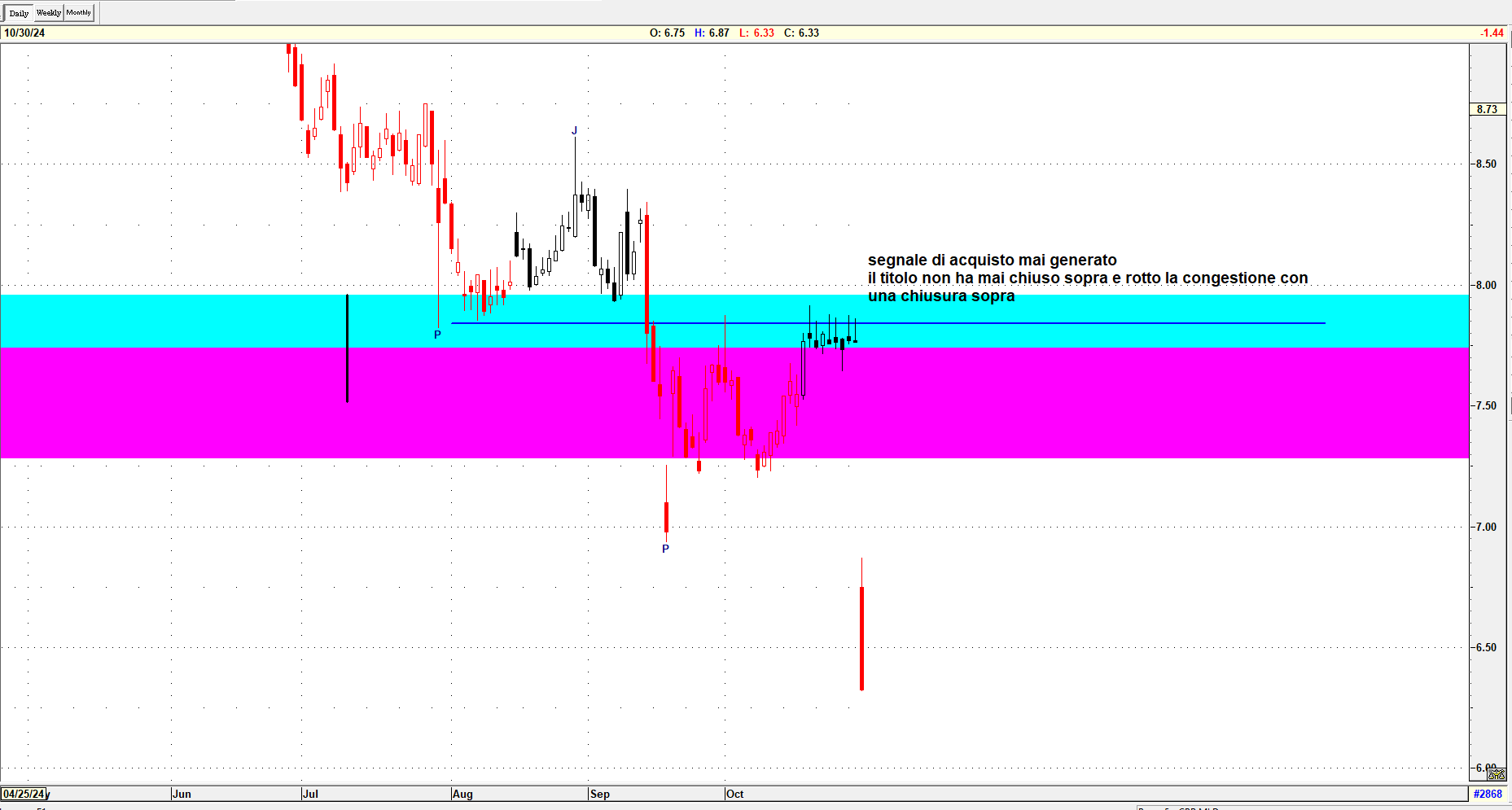 Dopo aver infranto la congestione e superato la MOB al ribasso, il titolo ha registrato un calo significativo, con una perdita complessiva di quasi il 20%.