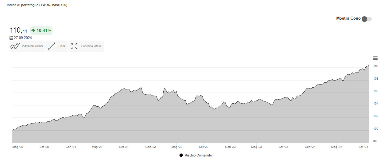 Ad ogni buon conto, tornando al nostro portafoglio, come anticipato poco sopra, siamo su un nuovo massimo storico, e alla valorizzazione di oggi all’ultimo close disponibile valorizza un NAV a 110,41 in ulteriore incremento rispetto al precedente massimo storico a 110,20 registrato appena due settimane fa.