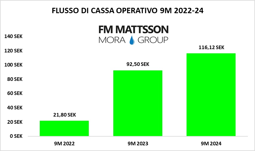 Nel corso dei primi nove mesi del 2024, FM MATTSSON ha riportato un miglioramento del flusso di cassa operativo rispetto al periodo precedente. Nonostante una riduzione delle vendite del 5%, il cash flow dopo le attività di investimento ha raggiunto 116,2 milioni di SEK, in aumento rispetto ai 92,4 milioni dello stesso periodo del 2023. Questo incremento è stato ottenuto grazie a un controllo rigoroso delle spese operative e a interventi di ottimizzazione, come la riduzione del personale presso lo stabilimento di Mora.