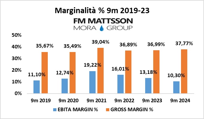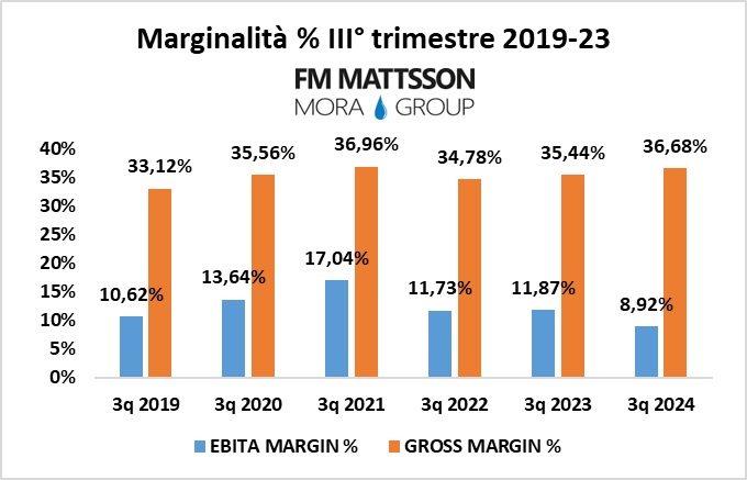 La marginalità di FM MATTSSON ha subito un netto deterioramento sia nel periodo cumulato gennaio-settembre sia nel terzo trimestre, evidenziando l'impatto delle difficili condizioni di mercato e dei costi straordinari.