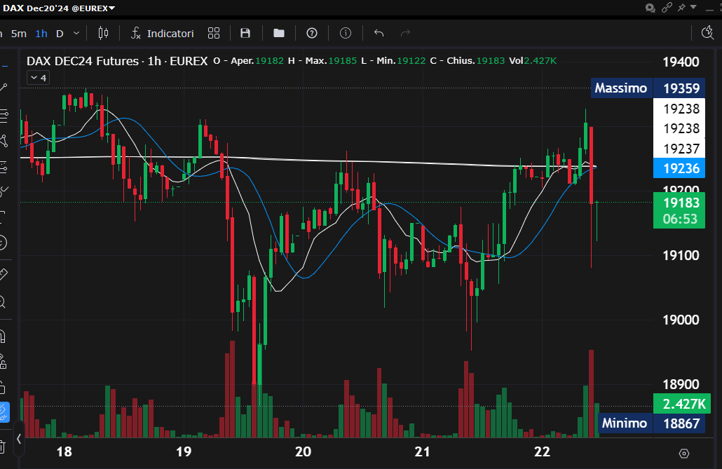 Nel timeframe orario del future del Dax, sono evidenti le shadows (ombre fuori dal corpo delle candele) eseguite dai prezzi nell'arco dell'intera settimana, a testimonianza della ritrovata volatilità.