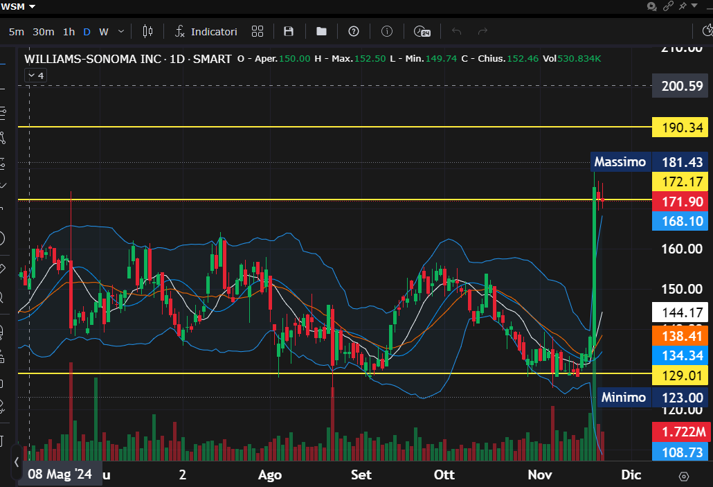 Williams Sonoma: opportunità e livelli chiave sul NYSE