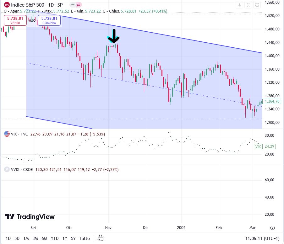 In attesa dell'esito elettorale statunitense, molti osservatori ritengono plausibile uno scenario di perfetta parità o quasi in stile Bush contro Al Gore nel 2000, quando il numero di elettori era a favore del secondo, ma visto che in USA contano gli Stati chiave, alias i grandi elettori, la vittoria andò poi ai repubblicani rappresentati appunto da Bush. Il tutto per una manciata di voti e a memoria si ricorse anche alla Corte Suprema dopo innumerevoli conteggi. Sono così andato a riprendere il grafico dell'S&P500 di quel "famoso" martedì e fu interessante vedere lo sviluppo nelle giornate immediatamente successive: l'indice scese da circa 1400 punti verso i 1300 (circa -7%). I mercati non amano l'indecisione ma la certezza e quindi non esiti incerti per l'elezione di un candidato.