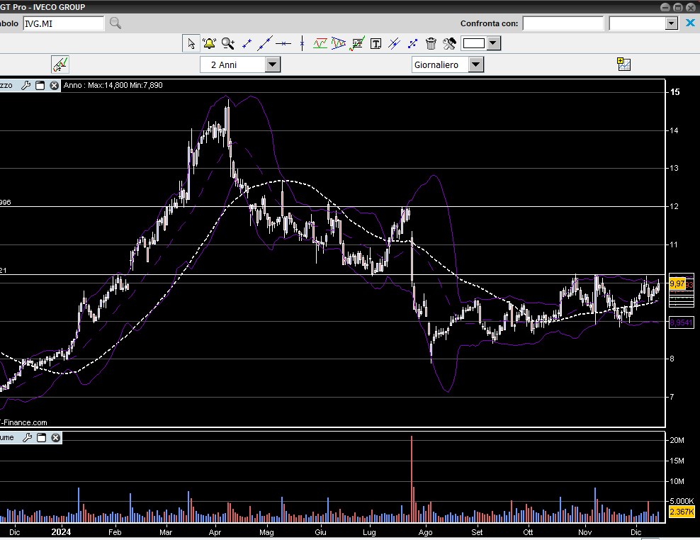 Tra i titoli azionari di interesse, Iveco si trova attualmente a ridosso di una zona tecnica cruciale. Il superamento della barriera posta a 10,20 euro potrebbe innescare un ciclo di giornate positive, con un target tecnico fissato a 12 euro. Su questo livello si prevede l’emergere di numerose uscite di portafoglio, rendendo cruciale il monitoraggio di tale resistenza.