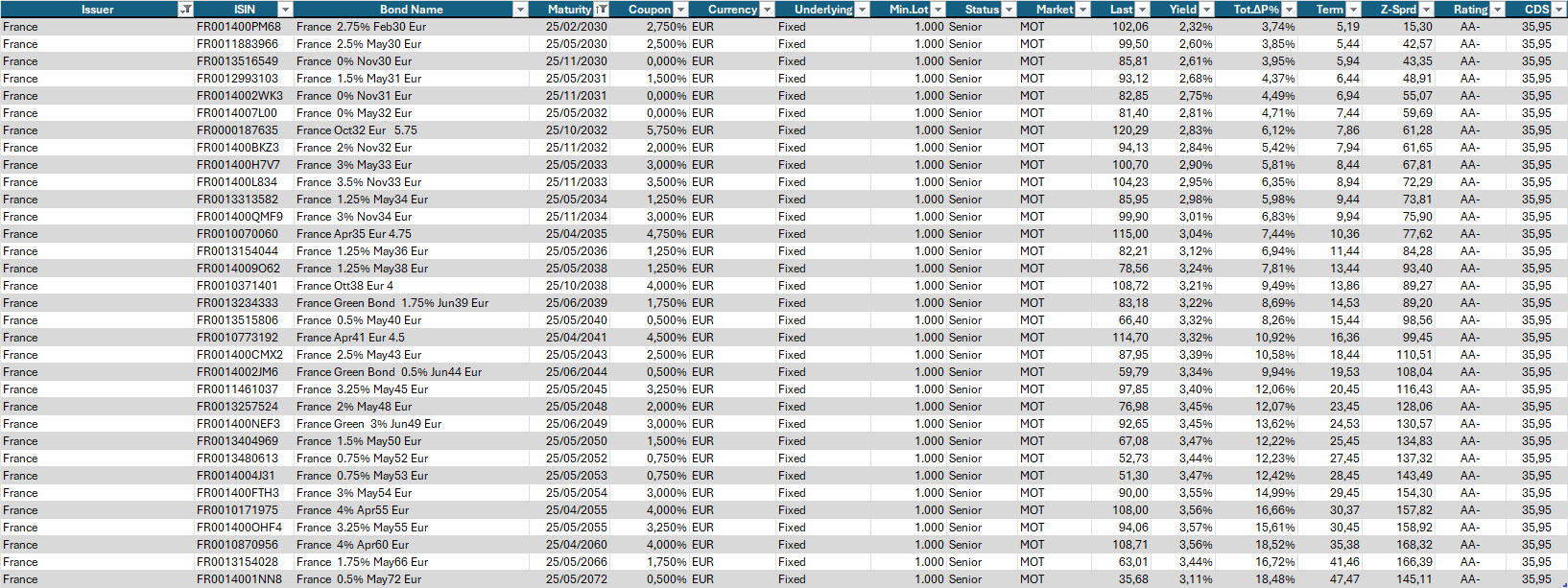 Vista l’importanza del tema Francia, ecco la selezione aggiornata dei governativi d’oltralpe.