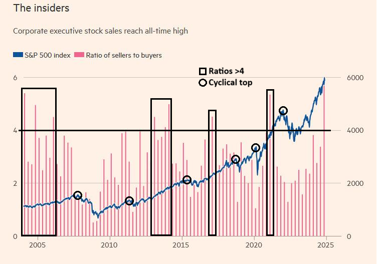 Gli insider (proprietari e dirigenti aziendali) hanno accelerato le vendite delle azioni delle loro società. Un chiaro segnale che le vendono sopravvalutate o comunque care. Ma uno studio mostra che queste categorie sono sempre in anticipo rispetto al top del mercato.