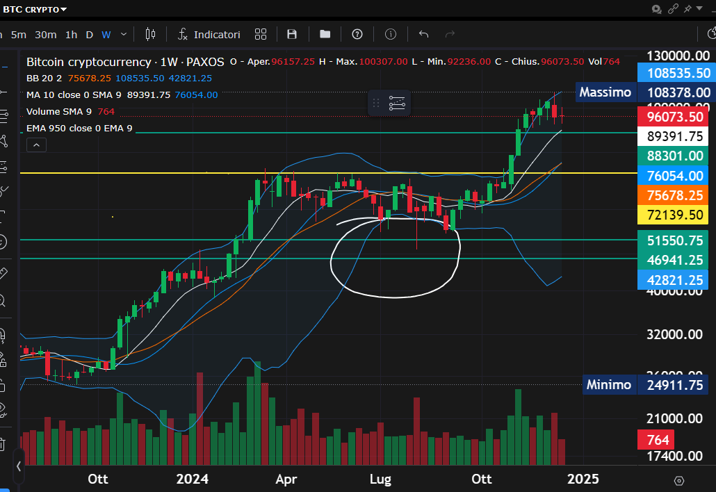 Vediamolo in questo grafico con timeframe settimanale.