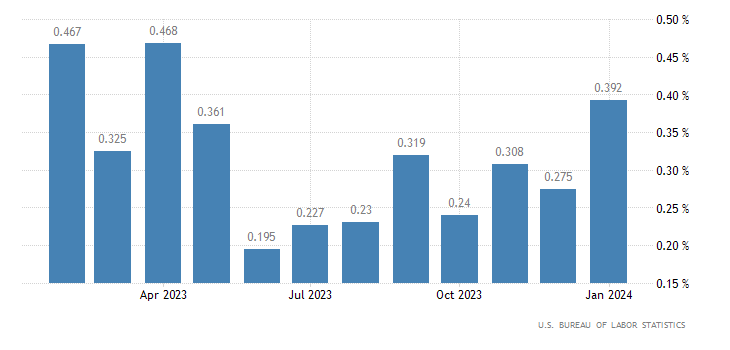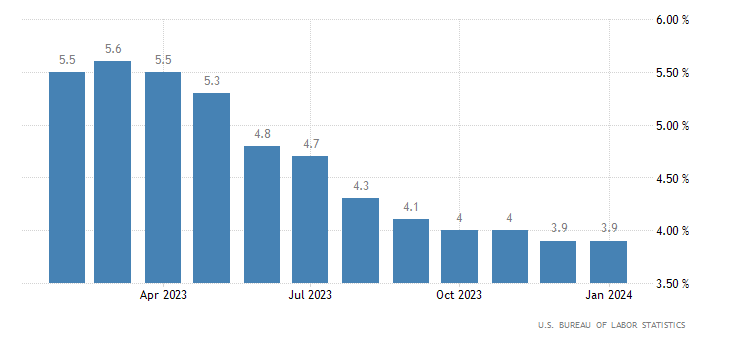 A livello annualizzato, il dato di gennaio non si sposta rispetto al mese precedente restando al 3,9%, poco sopra al consensus fissato al 3,7%. I dati sono rilasciati dall’U.S. Bureau of Labor Statistics.