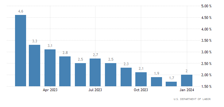A livello annualizzato, a gennaio si registra una crescita del 2,0%, oltre il consensus del +1,6% ed oltre la crescita di dicembre dell’1,7% (rivista da +1,8%). I dati sono rilasciati dall’U.S. Department of Labor.