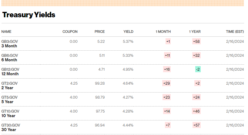 Stiamo parlando del mese di gennaio che di norma, a causa della destagionalizzazione, dovrebbe presentare dati inferiori al mese precedente. Così i tassi USA hanno preso a salire con forza, facendo nuovi massimi per l'anno in corso sulle principali scadenze. In termini di aspettative sui Fed Funds, ormai il primo taglio è scontato interamente solo al FOMC di giugno, ed entro fine anno i tagli scontati sono ormai meno di 4, come vedremo nel dettaglio in seguito.