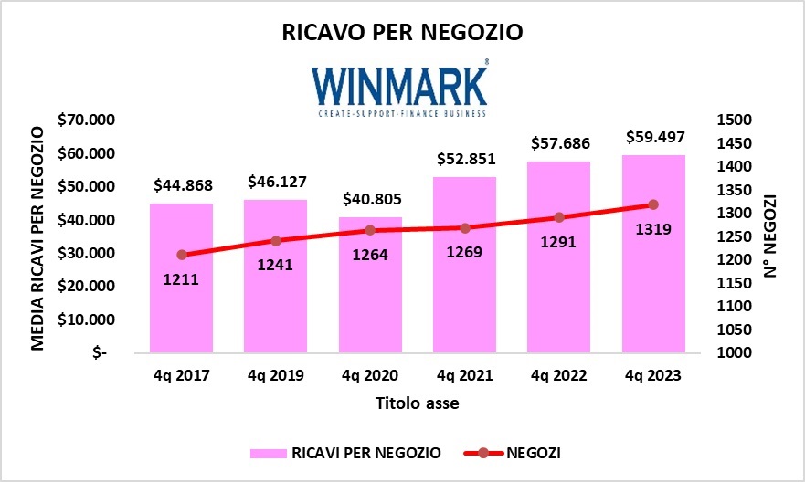 Nel corso del 2023, WINMARK ha proseguito il percorso di espansione dei negozi che sono aumentati di 27 unità arrivando a quota 1319.