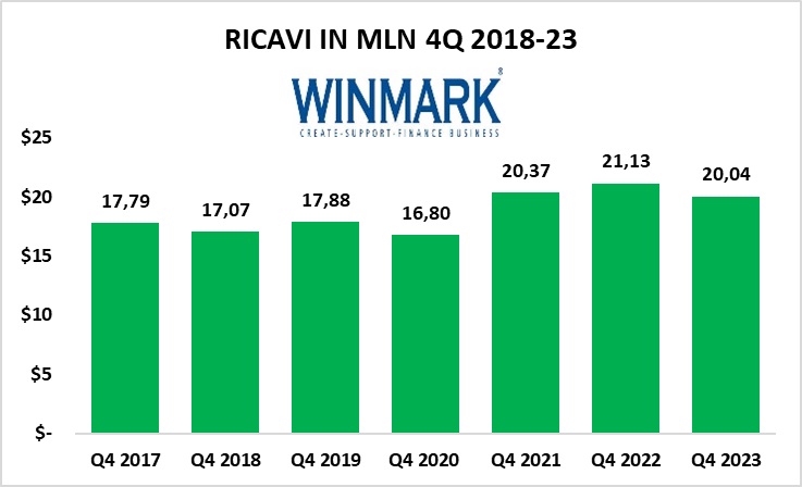 Nel corso del 2023 il fatturato di WINMARK è cresciuto del +2,25% portandosi al record storico di $ 83,24 mln.