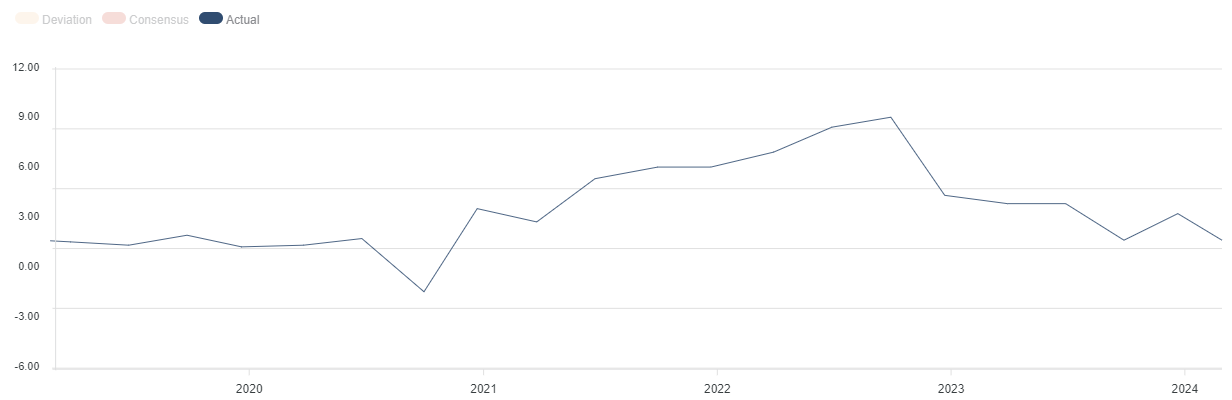 Il secondo dato preliminare del quarto trimestre 2023 relativo all’indice dei prezzi PIL, invece, registra un +1,7% contro il +1,5% del primo dato preliminare. Nel terzo trimestre era stato registrato un +3,3%. Il dato è rilasciato dall’U.S. Bureau of Economic Analysis.