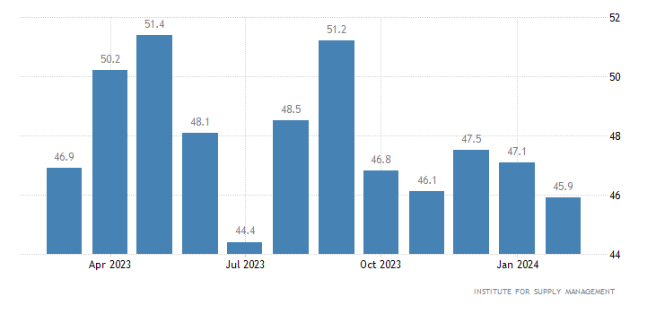 L’indice di occupazione manifatturiera rilasciato da ISM a febbraio si attesta a quota 45,9 punti, in calo rispetto ai 47,1 punti di gennaio.