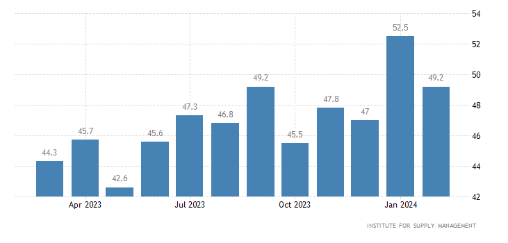 Il PMI manifatturiero rilasciato da ISM passa dal dato di gennaio di 49,1 punti a quello di febbraio di 47,8 punti, con un consensus che invece indicava una crescita a quota 49,5 punti.