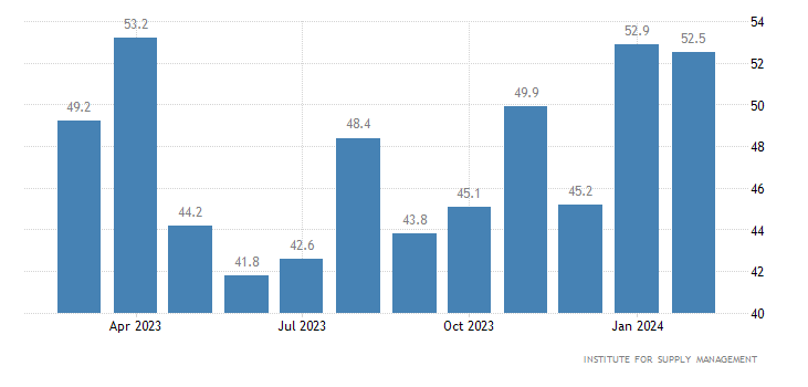 Sempre per quanto riguarda il settore manifatturiero, il dato sui prezzi passa dai 52,9 punti di gennaio ai 52,5 punti di febbraio.
