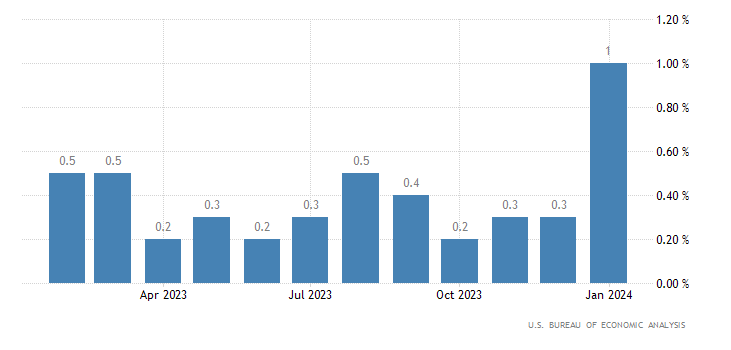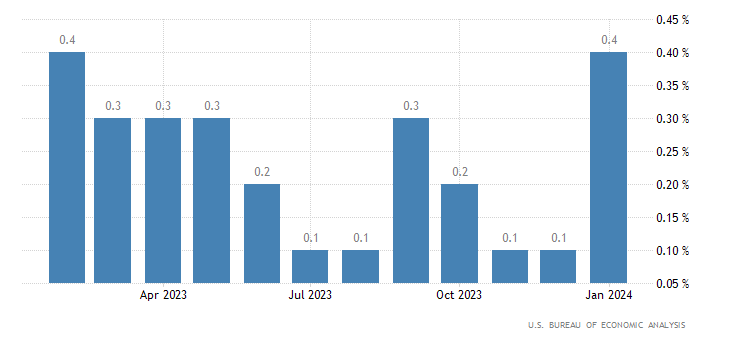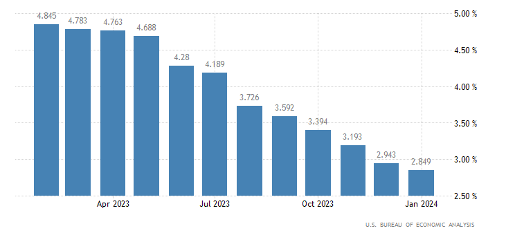 Su base annua, il dato di gennaio segna un +2,8%, pari al consensus ed appena sotto alla rilevazione di dicembre del +2,9%. I dati sono rilasciati dall’U.S. Bureau of Economic Analysis.