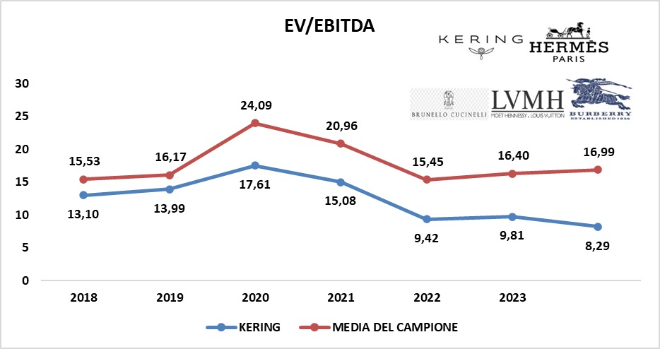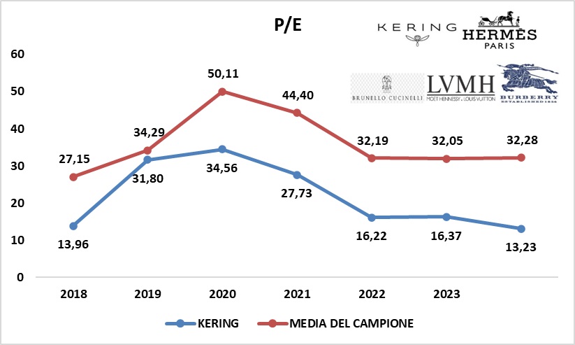 Tranne nel 2019, in tutti gli altri anni, KERING ha evidenziato un andamento inferiore rispetto alla media del campione. Nel 2023 si nota addirittura un trend opposto.