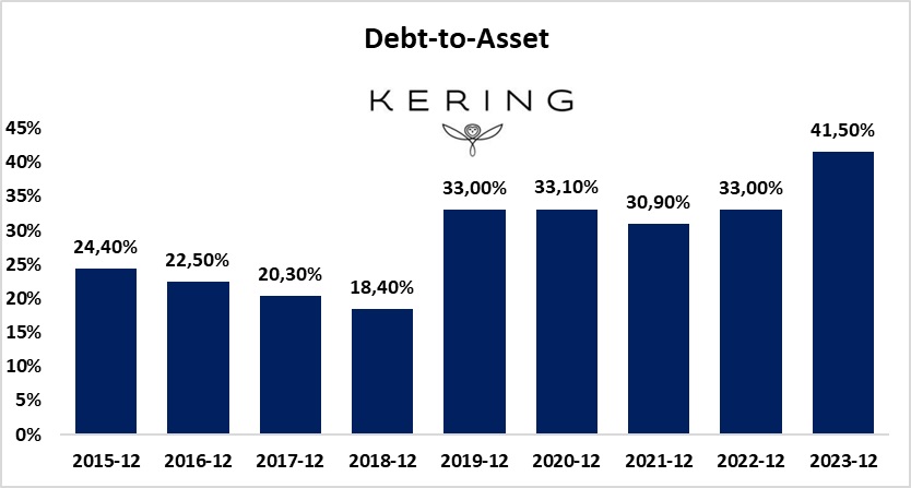 Nel corso degli ultimi due anni, KERING ha aumentato il proprio indebitamento netto indirizzato a coprire il fabbisogno degli propri investimenti.