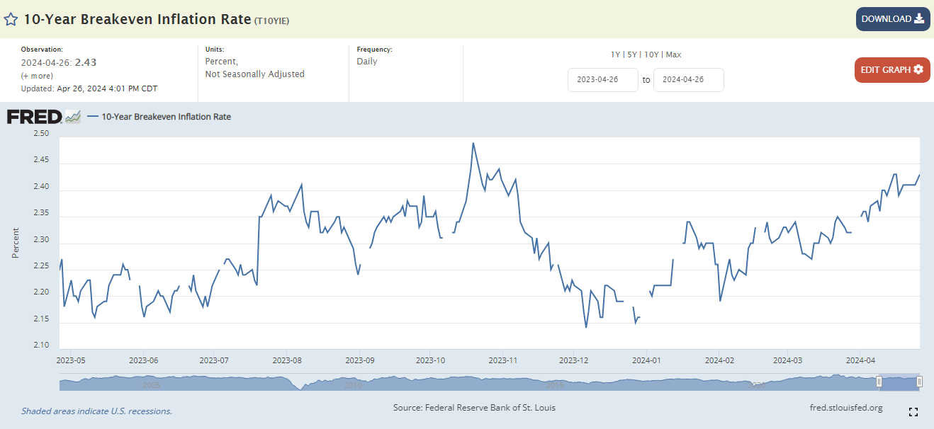 Alcuni dati rilasciati la scorsa settimana non dovrebbero aver contribuito ad aumentare il senso di urgenza e al contempo non dovrebbero aver lanciato segnali per escludere la possibilità che le riduzioni dei tassi possano iniziare a fine anno. L’indice dei prezzi delle spese per consumi personali a livello annualizzato nel mese di marzo si è attestato al 2,7% rispetto al 2,5% di febbraio, mentre il dato core di marzo ha segnato un +2,8% a livello annualizzato, come a febbraio.