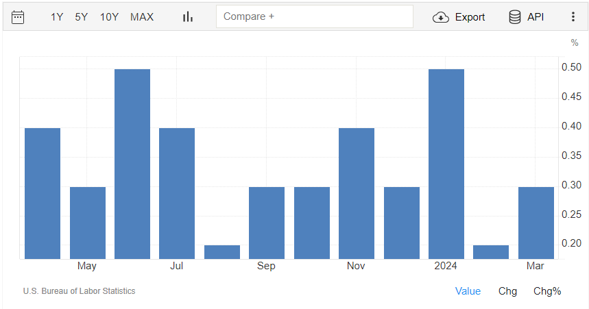 A livello annuale, la crescita di marzo è del 4,1% come indicato dal consensus, rilevazione che indica un rallentamento rispetto al +4,3% di febbraio. I dati sono rilasciati dall’U.S. Bureau of Labor Statistics.