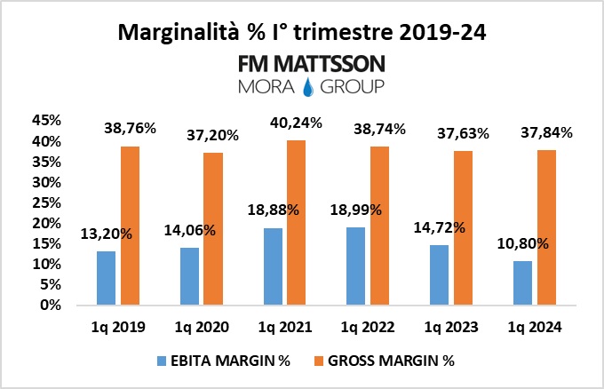 FM MATTSSON, in questo primo trimestre, ha accentuato le differenze di marginalità tra i due mercati.