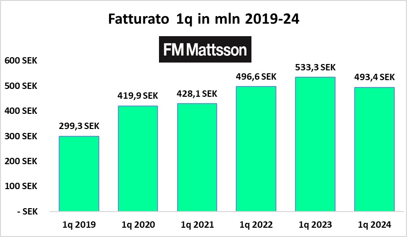 Il primo trimestre del 2024 ha registrato una contrazione dei ricavi del 7,49%: il Q1 si è chiuso a SEK 493,4 mln.