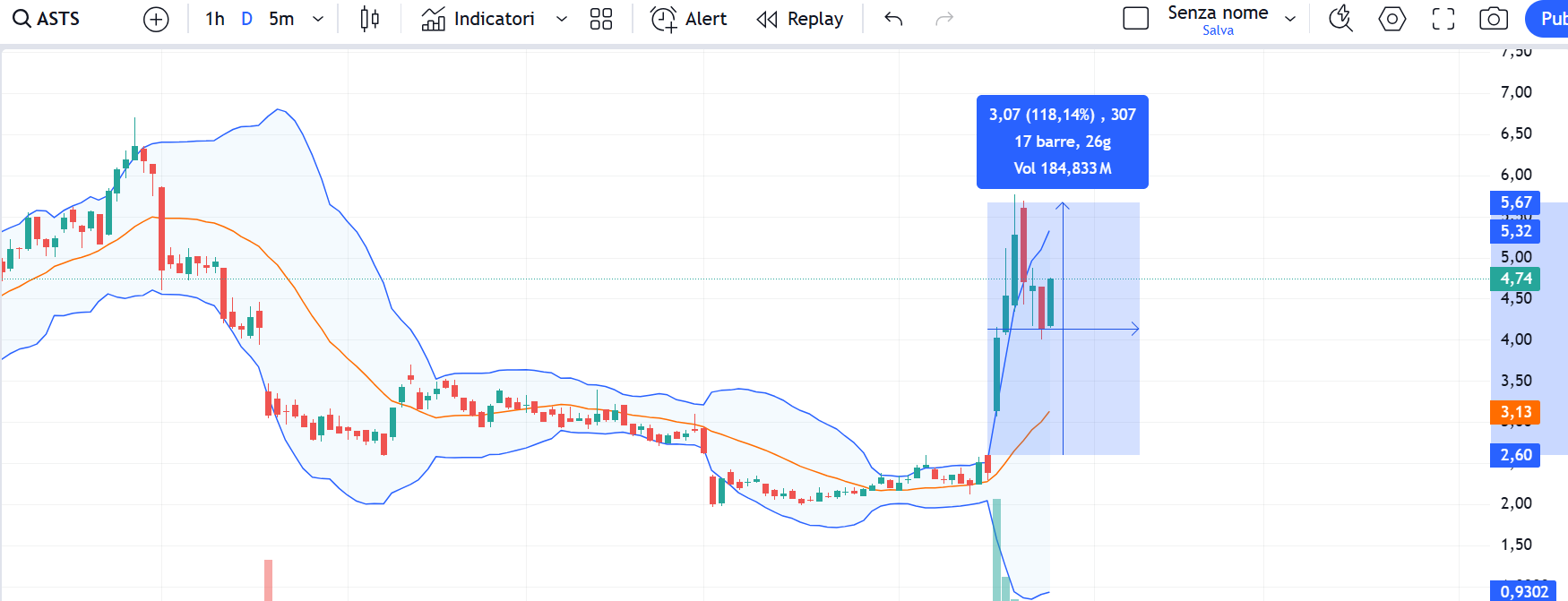 Leggermente diversa la dinamica per ASTS che merita ulteriore attenzione nell'ottava che sta per iniziare. che la vedrà tornare agli scambi, però. solo dal martedì, vista la festività negli Stati Uniti per questo lunedì 27 maggio.