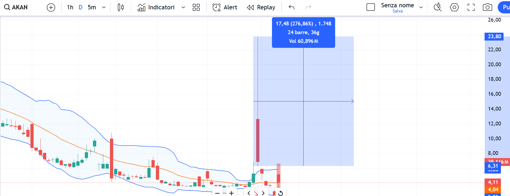 Akan invece torna a mostrare una dinamica simile a Syta con le impronte inconfondibili del trader statunitense che non teme rialzi del 280% e neanche di riportarlo a zero o addirittura sotto lo zero assoluto in poche ore. Letteralmente dalle stelle alle stalle.