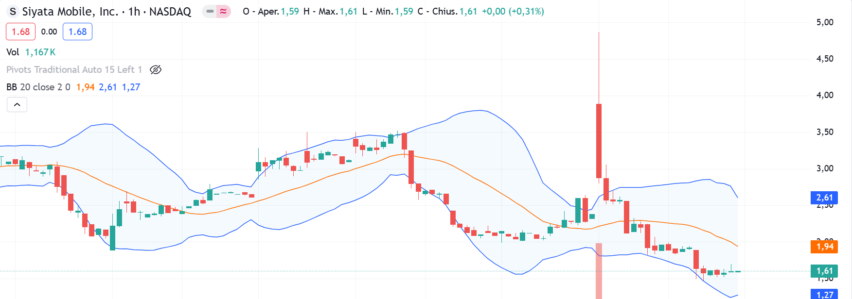 Utile anche guardare la mediana di Bollinger in un timeframe orario ed attendere la calamita alla mediana centrale.
