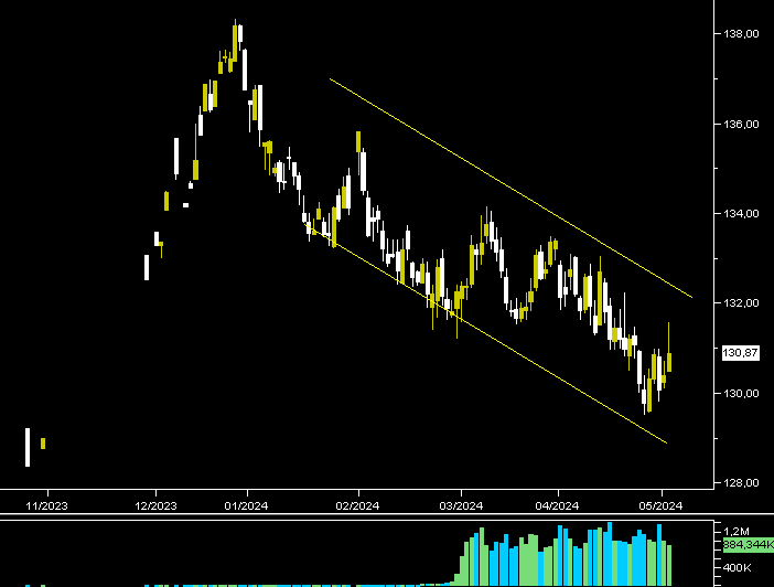 Il canale accennato lo vede ancora in ribasso e i 133-134 punti switch indicati in passato, rimangono lontani e con essi la possibilità di vedere guadagni in conto capitale sui Titoli di Stato almeno nel breve periodo.
