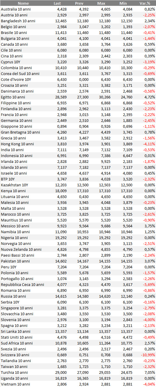 Il ranking considera i bond benchmark decennali in tutte le valute di emissione.