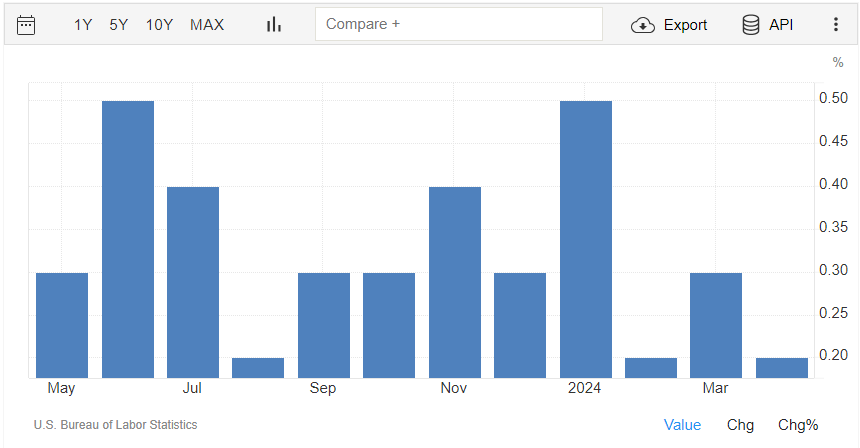 Su base annua, la crescita registrata ad aprile è del 3,9%, sotto al consensus del +4,0% e alla rilevazione di marzo del +4,1%. Il dato è rilasciato dall’U.S. Bureau of Labor Statistics.