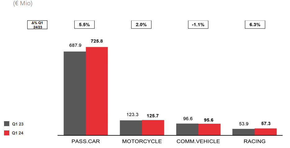 Esaminando i contributi dei vari segmenti di business, si nota una crescita positiva in tutti i settori. In particolare, il segmento motociclistico ha registrato una crescita del 2% dopo due trimestri difficili l'anno scorso, mentre il segmento racing ha continuato a portare grande soddisfazione con una crescita del 6,3%. Brembo è presente in tutte le principali competizioni motoristiche globali, fornendo prodotti a tutti i team di Formula 1 e MotoGP.