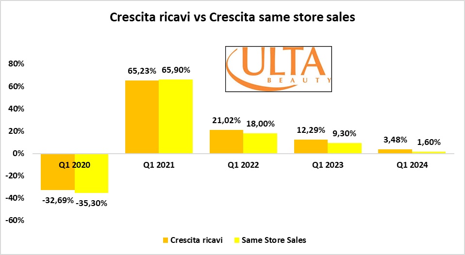 "Il team di Ulta Beauty ha registrato una crescita delle vendite nette del 3,5% e una crescita delle vendite comparabili del 1,6% in un ambiente operativo dinamico.