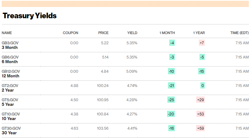 Solo lievemente risaliti i rendimenti dei Treasury nel corso della scorsa settimana anche se, nelle giornate di lunedì e martedì, i dati macro hanno prodotto delle oscillazioni di una certa entità. Nello specifico i numeri riportano che la scadenza corta costituita dal Treasury 2Y è passata dal 4,707% di due venerdì fa, all’attuale 4,74%. Stessa situazione per il Treasury 10Y che dal 4,223% di due venerdì fa passa all’attuale 4,265%. Infine per la scadenza lunga del 30Y troviamo un’ampiezza leggermente maggiore con il rendimento che passa dal 4,35% di due venerdì fa all’attuale 4,405%. Attualmente il classico spread 2Y – 10Y è posizionato a 47,5 punti.