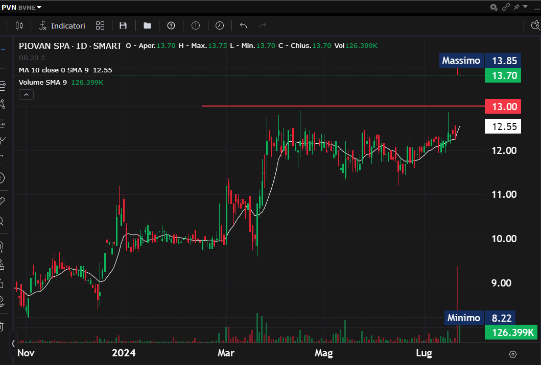 Versante azionario italiano che vede la rottura in break out da parte di Piovan