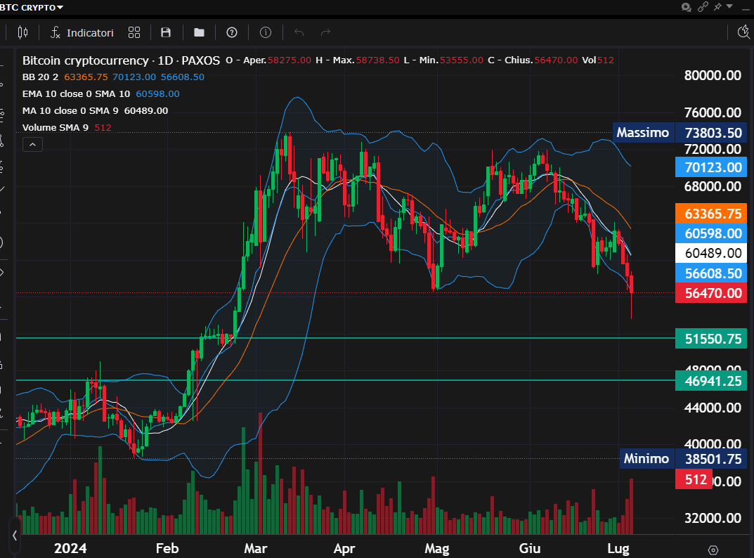 La svolta sul Bitcoin avviene a ridosso circa dei 51500 $.