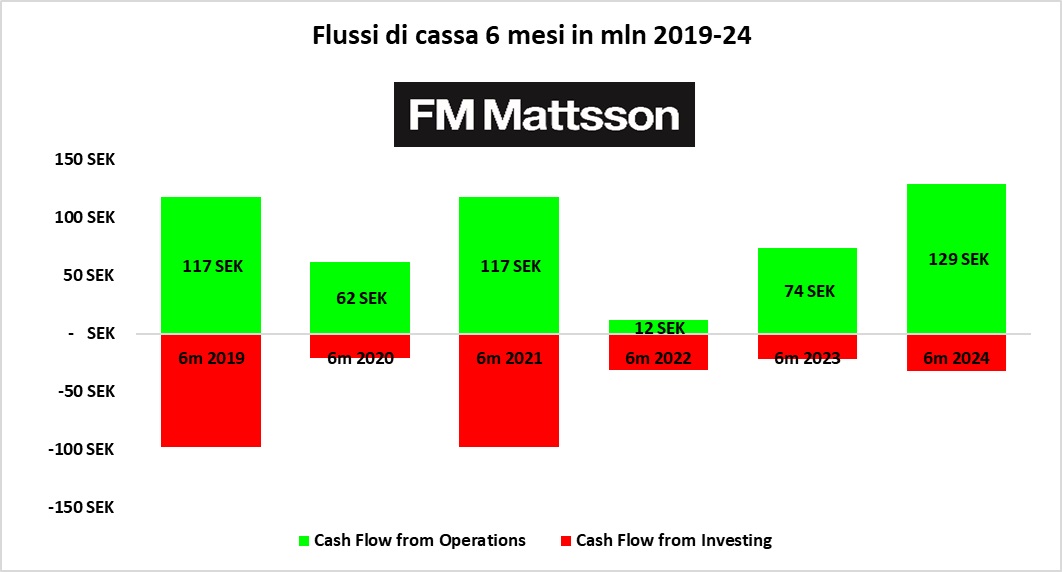 Malgrado l'andamento dei ricavi, il core business di FM MATTSSON si conferma capace di generare flussi di cassa operativi positivi e ben superiori al fabbisogno richiesto dal Capex.
