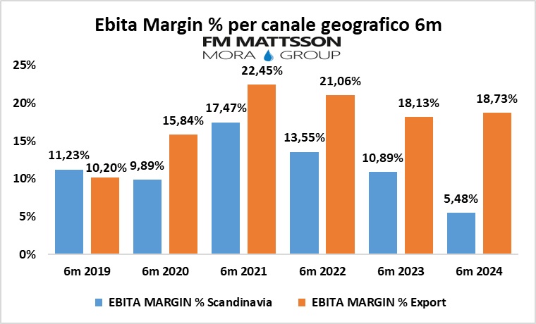 FM MATTSSON, in questo primo semestre, ha accentuato ulteriormente le differenze di marginalità tra i due mercati.