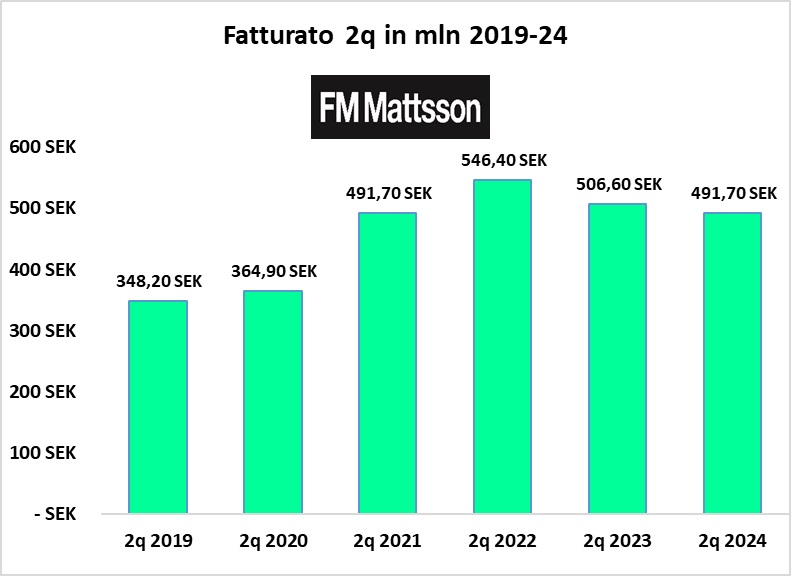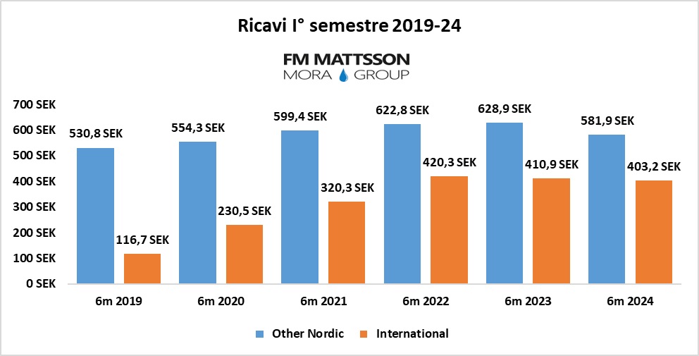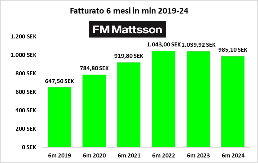 Il primo semestre del 2024 ha registrato una contrazione dei ricavi del 5,27%: l’H1 si è chiuso a SEK 985,1 mln.