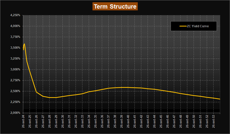 Il movimento di appiattimento della curva (flattening) è definitivamente concluso, con il restringimento del differenziale 10Y-2Y, che è ora a 0 bps, rispetto ai precedenti -3 bps. Rimane ancora la pronunciatissima inclinazione negativa nel tratto a brevissimo (in fase di progressivo assorbimento), con la curva che esprime ora un massimo di rendimento sulle scadenze corte ad inizio 2025 in area 3,25%.