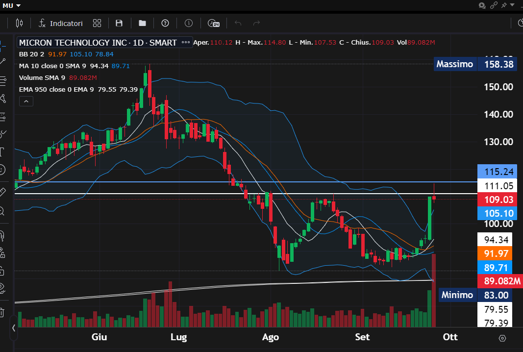 Qualche buona opportunità si appalesa su qualche titolo che ha avuto un comportamento più razionale ed è il caso di Micron che vediamo nel dettglio.