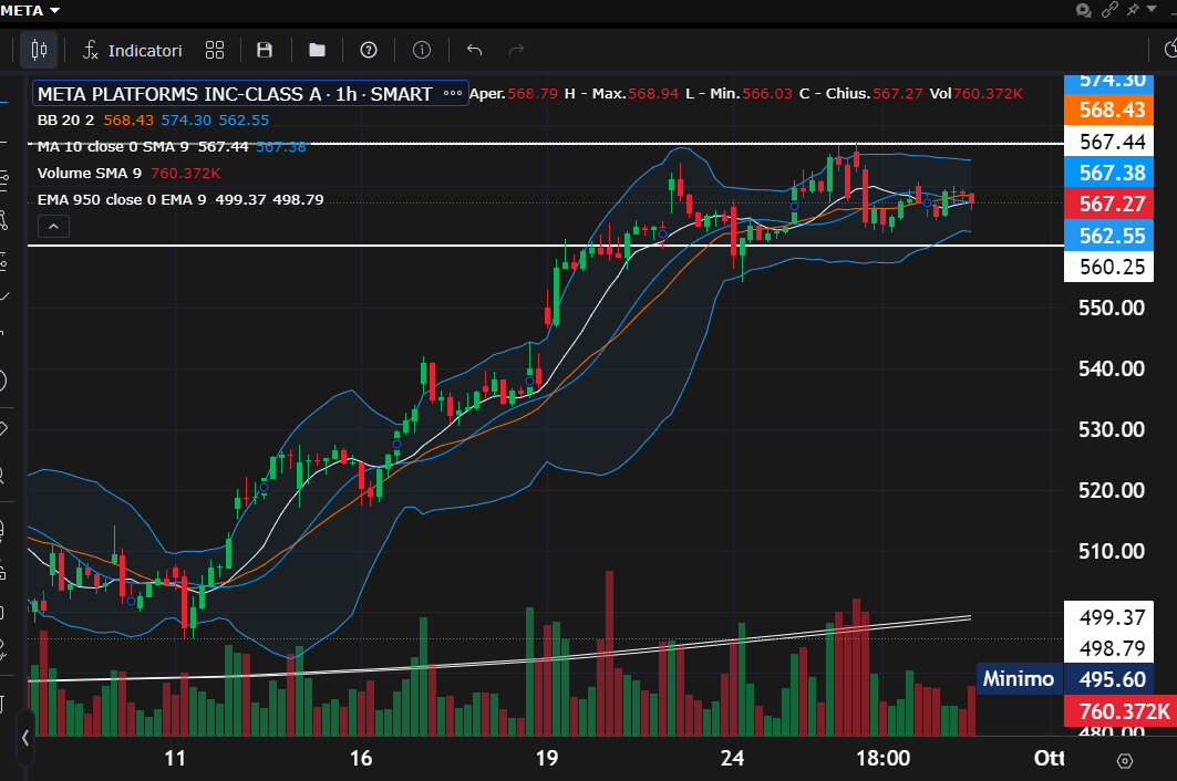Si era detto la scorsa settimana che il secondo target ai 630$ per Meta, sarebbe stato messo nel mirino sopra i 560$.
