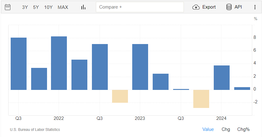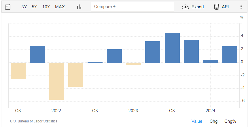 Nel secondo trimestre 2024, la produttività nel settore non-agricolo segna un +2,5%, appena sopra al dato preliminare del +2,3%. Il dato è rilasciato dall’U.S. Bureau of Labor Statistics.